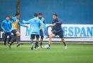 Na sequência, os atletas foram para o Campo 1 iniciando aquecimento e trabalhos físicos orientados pelo preparador Mário Pereira e sua equipe. Ele montou um circuito com várias estações com foco na velocidade e agilidade, com exercícios de salto e movimentos laterais.