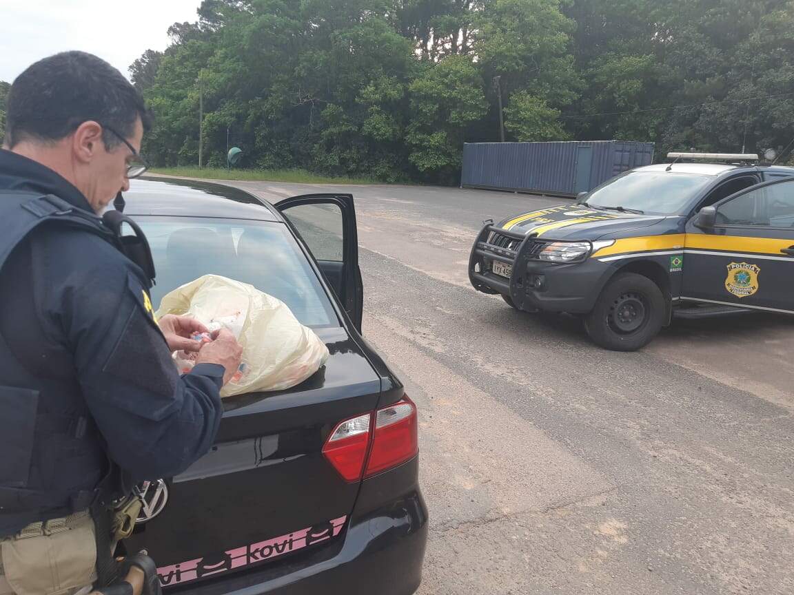 Na tarde deste sábado (15), na BR-290, a PRF (Polícia Rodoviária Federal) prendeu um traficante transportando quase dois quilos de cocaína prontos para a venda em um Voyage, em Pantano Grande.