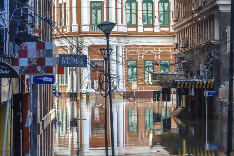 Em Porto Alegre, três comportas estão abertas com o objetivo de permitir o escoamento da água que inunda a capital do Rio Grande do Sul para o Guaíba. Fechada desde o dia 2, a comporta de número 3, da avenida Mauá (esquina com a rua Padre Tomé), foi derrubada pelo Departamento Municipal de Água e Esgotos na sexta-feira (17). A operação no Centro Histórico durou aproximadamente uma hora.