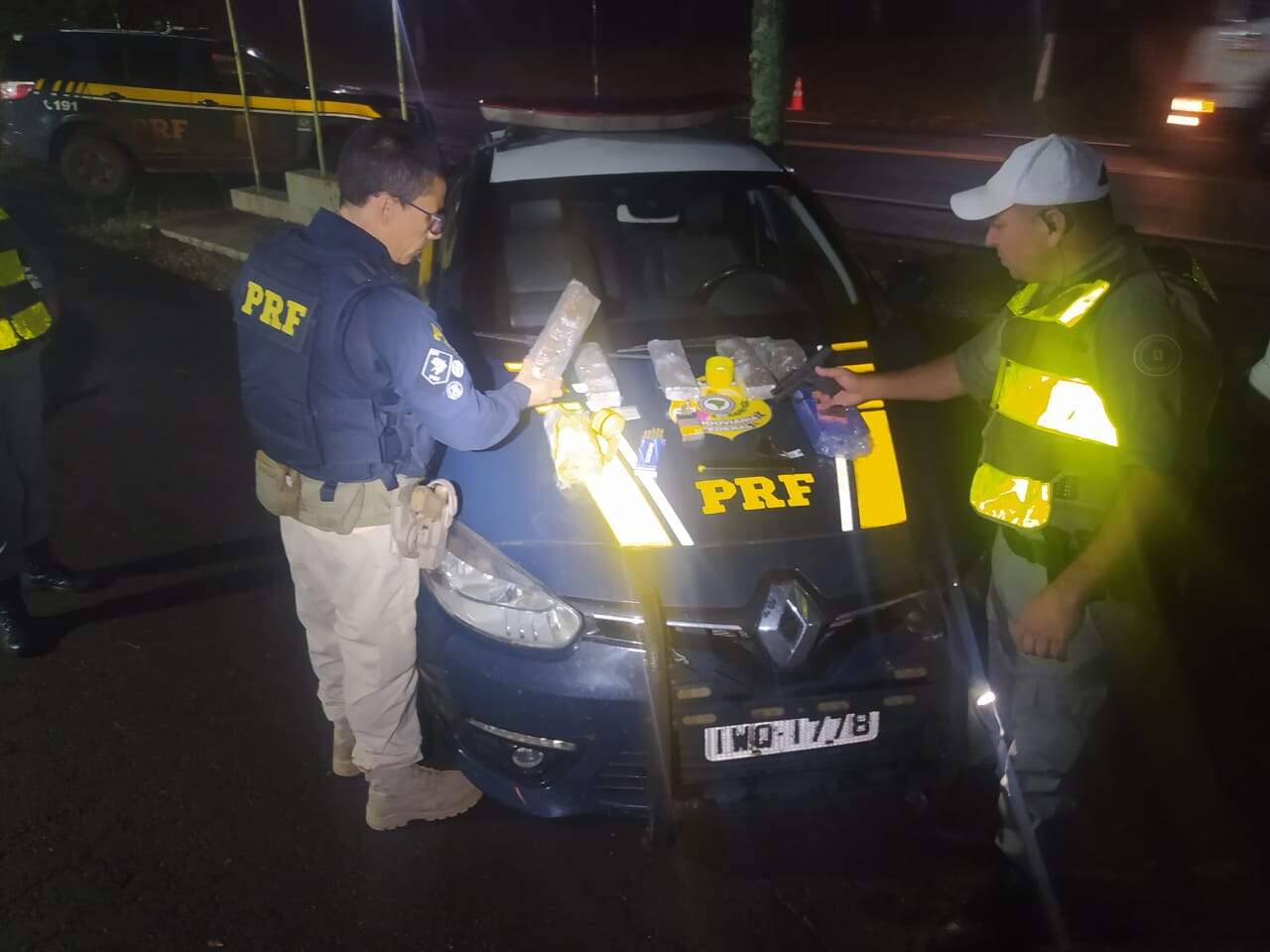 A PRF (Polícia Rodoviária Federal), com apoio da Brigada Militar, prendeu três pessoas, apreendeu dois carros, uma arma e 7 quilos de drogas. Um dos veículos prestava apoio aos criminosos avisando sobre fiscalizações policiais. A ação ocorreu na madrugada desta quinta-feira (04), na BR-287, em Santiago.