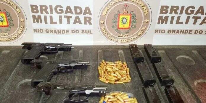 Três pistolas calibre nove milímetros com seis carregadores e 88 munições foram apreendidas pela BM (Brigada Militar) no bairro Mário Quintana, em Porto Alegre. A ação ocorreu na madrugada deste sábado (18) no loteamento Timbaúva. O flagrante resultou ainda na prisão de três criminosos.