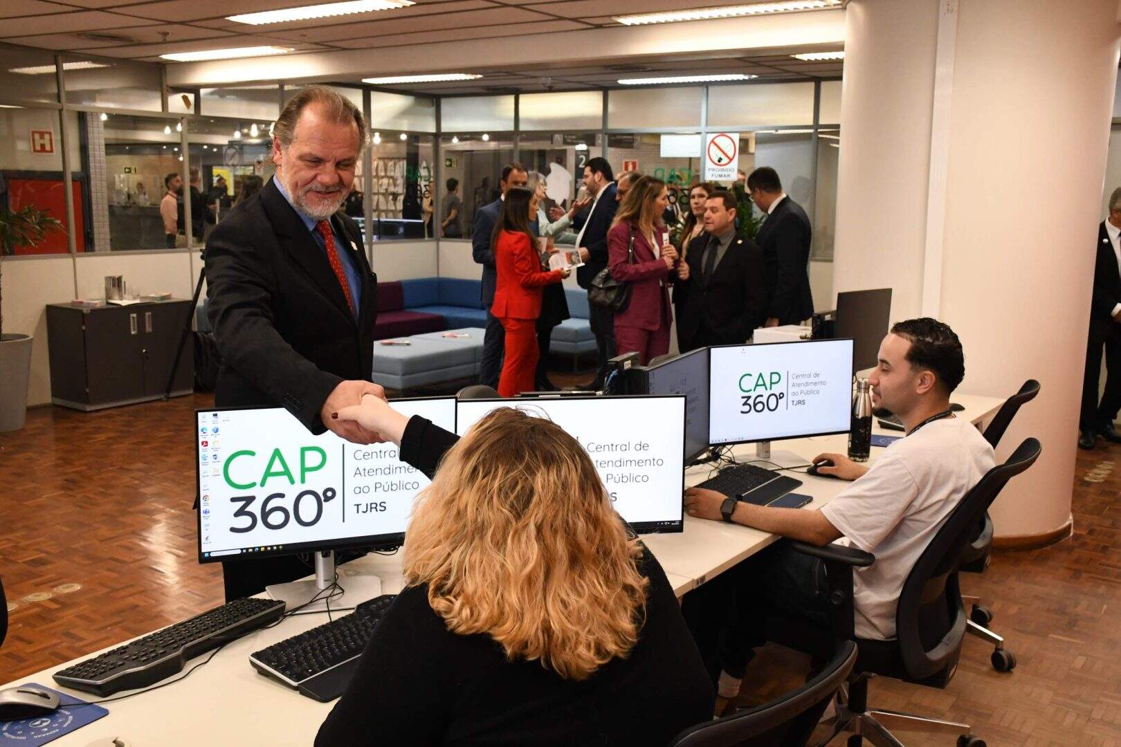 A partir de agora, a população poderá encaminhar solicitações, realizar consultas e esclarecer dúvidas sobre as atividades desenvolvidas pelos Tribunais sediados no Rio Grande do Sul (TJ, TRF4, TRT4 e TRE) em um único local: a Central de Atendimento ao Público – CAP 360º, inaugurada nesta quinta-feira (9), no Tribunal de Justiça.