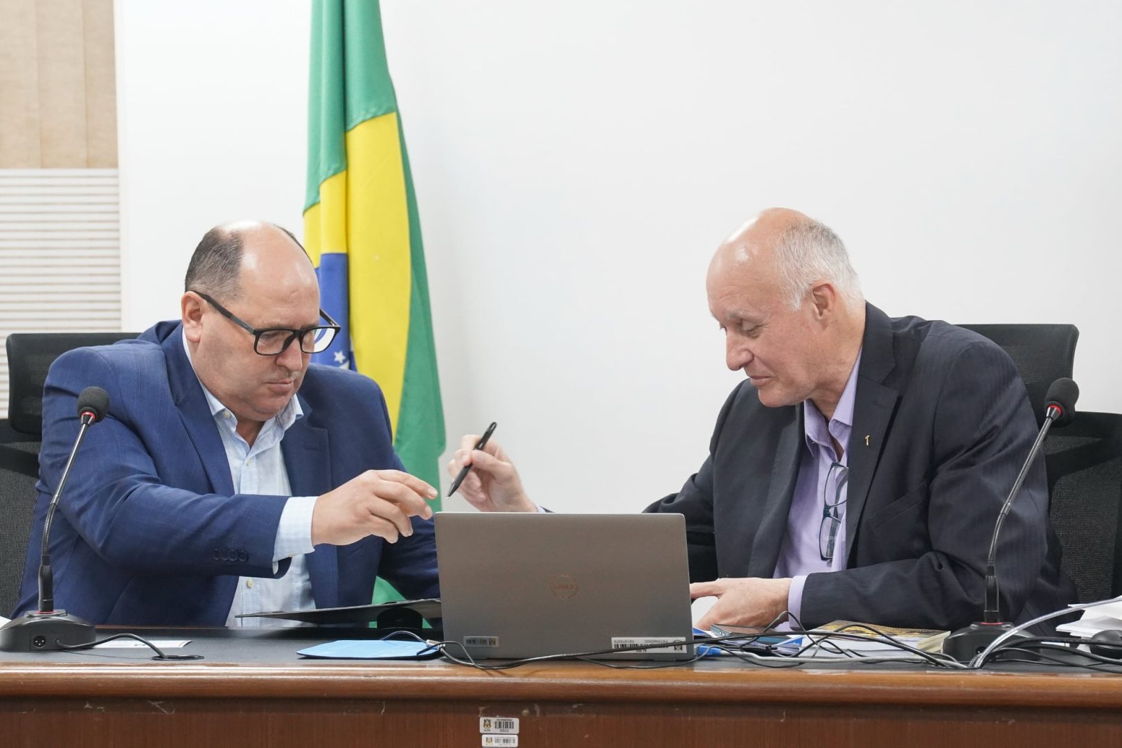 Sergio Peres conversou ontem com o jornalista Flavio Pereira logo após a assinatura do ato de instalação do Fórum Democrático de Desenvolvimento Regional 2026/2027, que terá na direção o filósofo e teólogo Roque Bakof.