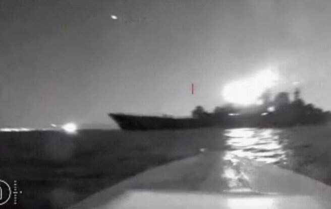 Imagens publicadas nos canais de mídia social russos pareciam mostrar um navio atirando no mar e um objeto em chamas explodindo. Os canais de mídia social ucranianos também postaram um vídeo noturno filmado do que eles indicaram ser um drone marítimo, flutuando perto de um navio.
