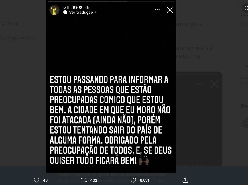 Em entrevista, Bill conta que ficou muito aliviado ao chegar na Romênia, país que compartilha uma fronteira de aproximadamente 650 quilômetros com o território ucraniano, “é uma situação que só vemos em filme, e que, de repente, acontece com a gente”.