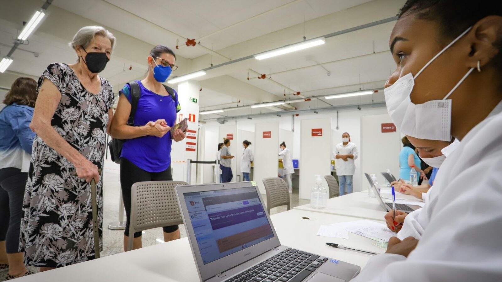 Documentação: documento de identidade com CPF e carteira de vacinação. Profissionais de saúde devem apresentar comprovante de vínculo com o conselho de classe. Novos profissionais de apoio à saúde devem apresentar declaração impressa de vínculo com o serviço, carteira ou contrato de trabalho e ficha CNES do serviço de saúde. No caso de imunocomprometidos, é preciso apresentar comprovante da condição de saúde por meio de atestado médico, nota de alta hospitalar ou receita de medicação.
