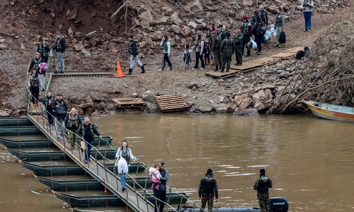 O Exército vai refazer as passarelas flutuantes para pedestres que foram instaladas em rios do Vale do Taquari, no Rio Grande do Sul. O Estado enfrenta a maior tragédia climática de sua história, atingido por chuvas e enchentes desde o fim do mês de abril.