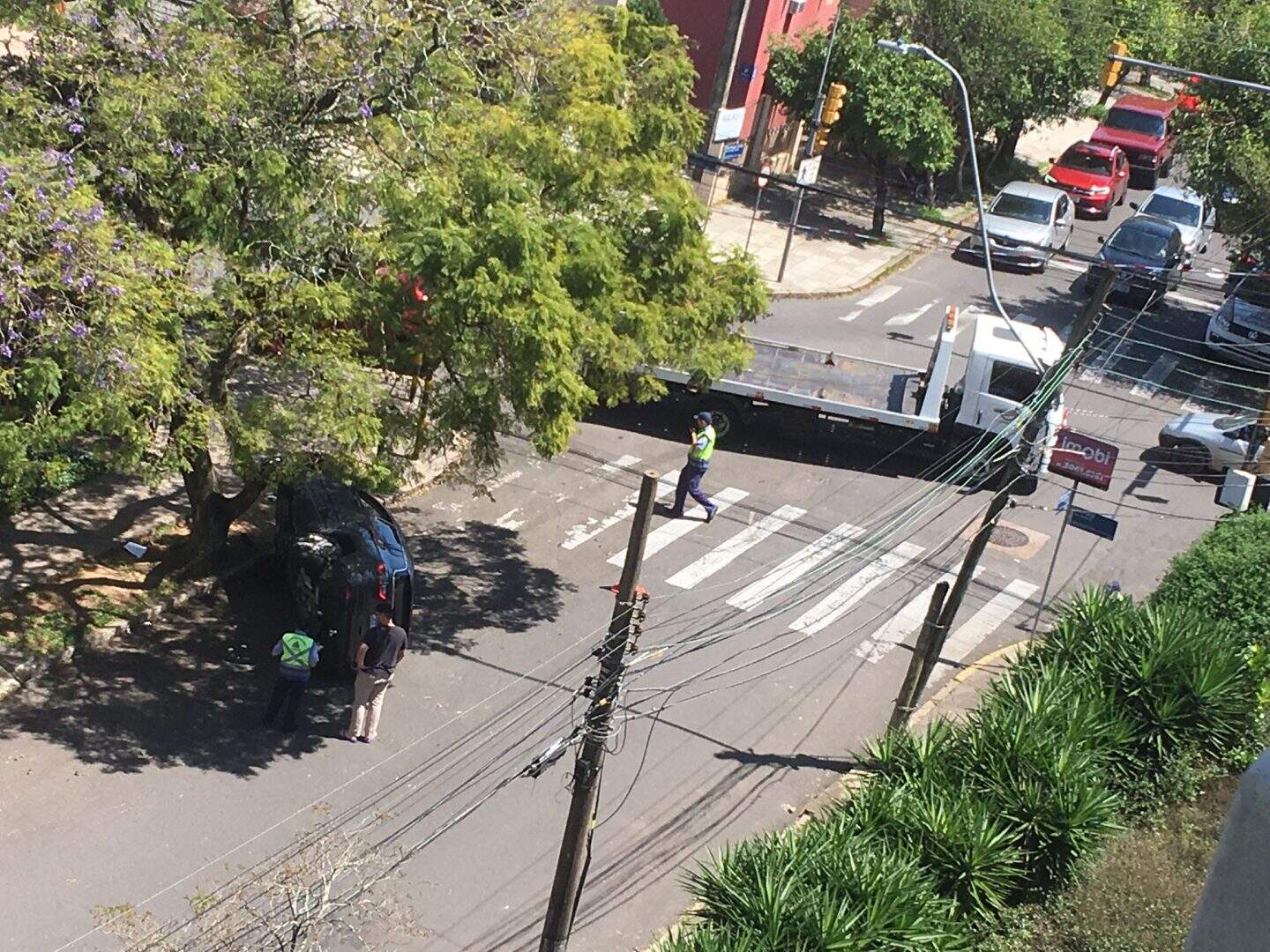 Um Jeep Compass tombou após colidir contra um Citroën C3, no fim da manhã deste domingo (15), no bairro Cristo Redentor, na Zona Norte de Porto Alegre.