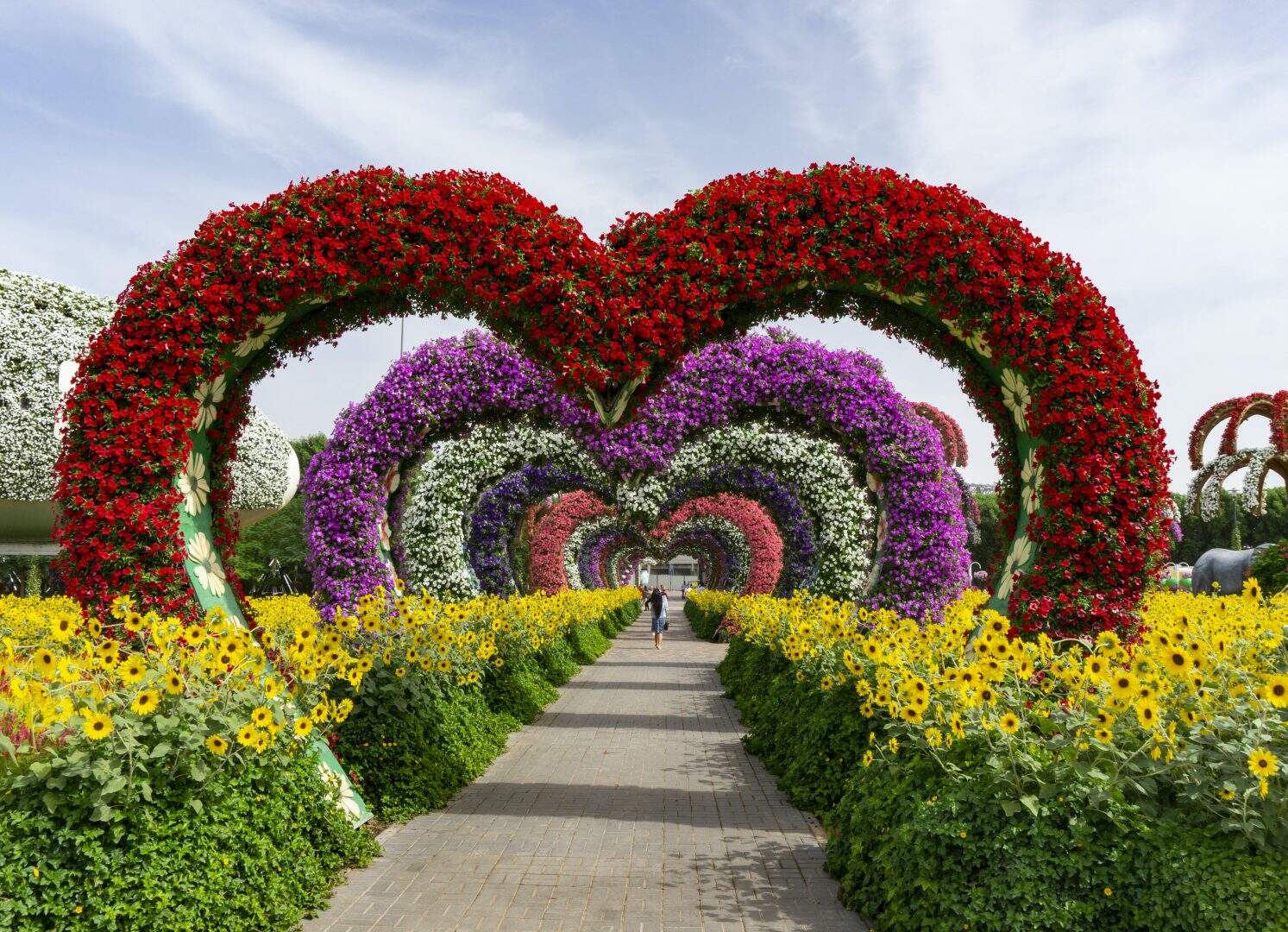 Aberto anualmente de novembro a maio, o Dubai Miracle Garden dá vida a milhões de flores organizadas em diferentes formas e designs. Com 72 mil m² e 50 milhões de flores, o parque oferece uma lista de estruturas famosas e perfeitas para fotos, incluindo uma passagem formada por corações, grandes castelos florais, animais artísticos e uma enorme variedade de arranjos alternativos e peculiares.
