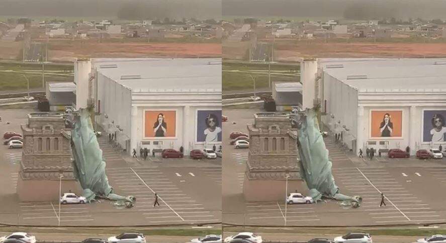 O vendaval que atingiu a Região Metropolitana de Porto Alegre na tarde desta segunda-feira (15) derrubou a réplica da estátua da Liberdade, na cidade de Guaíba. A estrutura, localizada na loja Havan, desabou com a força do vento e da chuva. Conforme a empresa, não há feridos ou danos materiais para clientes.