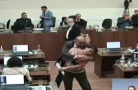 A situação foi flagrada pelas câmeras do legislativo. Os vereadores participavam de uma sessão na quarta-feira (7) e discutiam um projeto, quando a parlamentar foi abordada por Silva.
