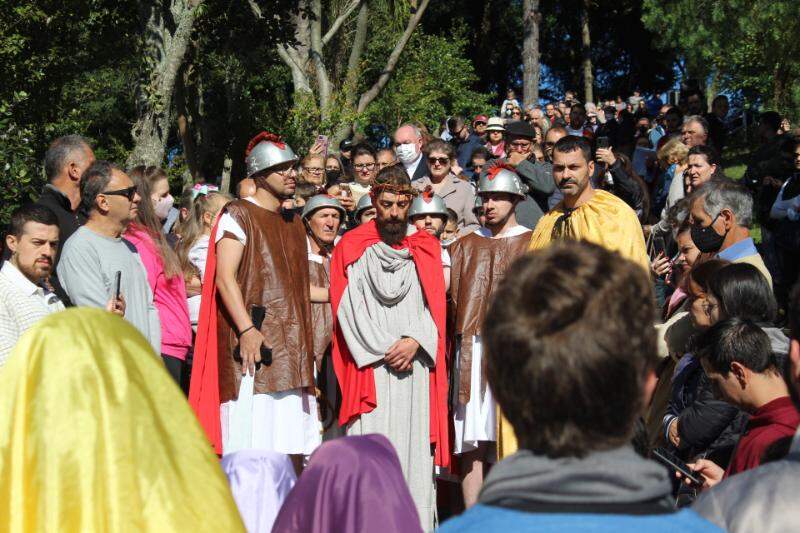 Após dois anos, um dos principais momentos desta Sexta-Feira Santa (15) voltou a ocorrer de forma presencial em Caxias do Sul, na Serra, na 18ª edição da Via-Sacra da Juventude, realizada pelo Setor Juventude da Diocese de Caxias. Cerca de 350 pessoas acompanharam a encenação que ocupou as escadarias junto ao Monumento Jesus Terceiro Milênio, nos pavilhões da Festa da Uva.
