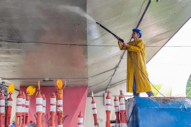 A prefeitura começou a revitalização em 14 de março. As equipes já concluíram a lavagem da estrutura e agora está na fase de reparos. Além da manutenção das juntas de dilatação, a empresa contratada para realizar o serviço também vai realizar a pintura.
