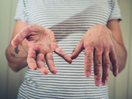 A médica Rosa Teixeira, da EVDT, destaca que os sintomas mais marcantes são as lesões em mãos, pés e boca e os primeiros sinais costumam ser a dor de garganta e febre. “Em dois ou três dias surgem pequenas feridas avermelhadas nas mãos, pés e boca. Também podem ocorrer mal-estar e perda do apetite”, frisa.