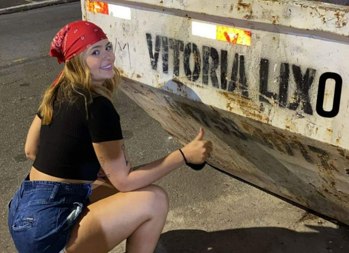 Viih Tube se divertiu ao encontrar uma caçamba de lixo escrita ‘Vitória lixo’. A youtuber e participante do BBB21 posou ao lado da lixeira e brincou na legenda afirmando que havia pedido um “sinal do Universo” e recebeu.