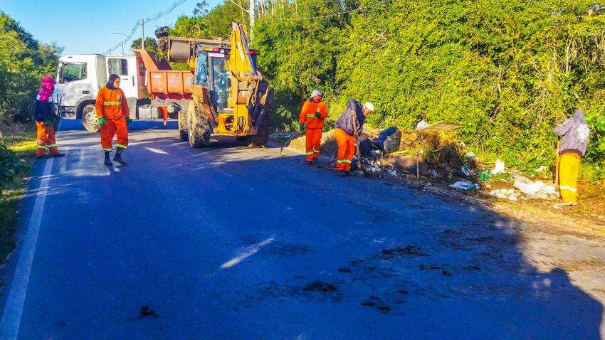 Um talude foi colocado na região para inibir o descarte irregular de resíduos. Participaram da ação seis garis e dois fiscais do DMLU, com o auxílio de cinco caminhões e uma retroescavadeira.