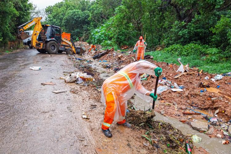 A limpeza foi executada por uma equipe composta por quatro garis e um fiscal, com o auxílio de uma retroescavadeira e dois caminhões.