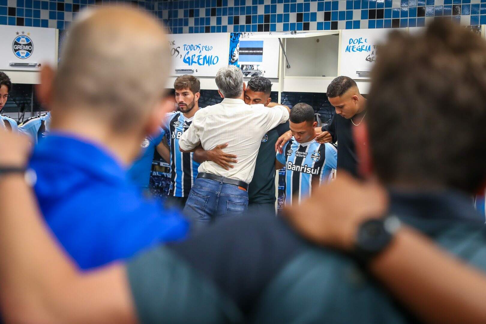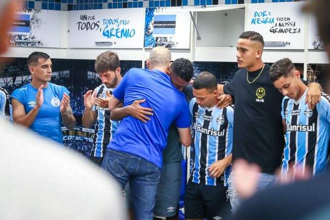Thiago ainda recebeu frases de apoio do vice-presidente de futebol, Paulo Caleffi, que o abraçou durante o seu discurso. O jogador ficou visivelmente emocionado com o discurso dos mandatários gremistas.
