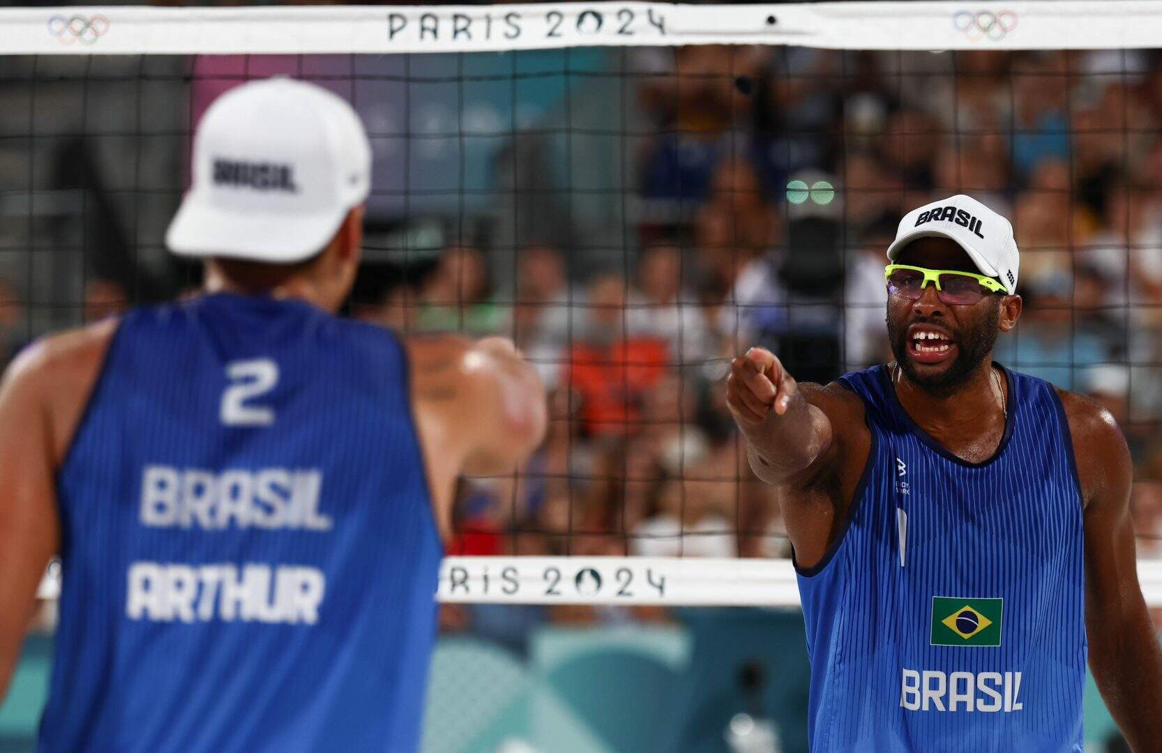 Evandro e Arthur confirmaram neste domingo (4) o favoritismo diante dos holandeses Van de Velde e Matthew Immers e avançaram para as quartas de final do vôlei de praia masculino nos Jogos Olímpicos de Paris.