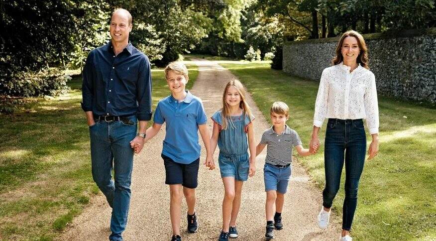 A fotografia, publicada em suas redes sociais, mostra o casal em uma caminhada familiar com seus três filhos radiantes e de roupas de calor: o príncipe George (9), a princesa Charlotte (7) e o príncipe Louis (4).