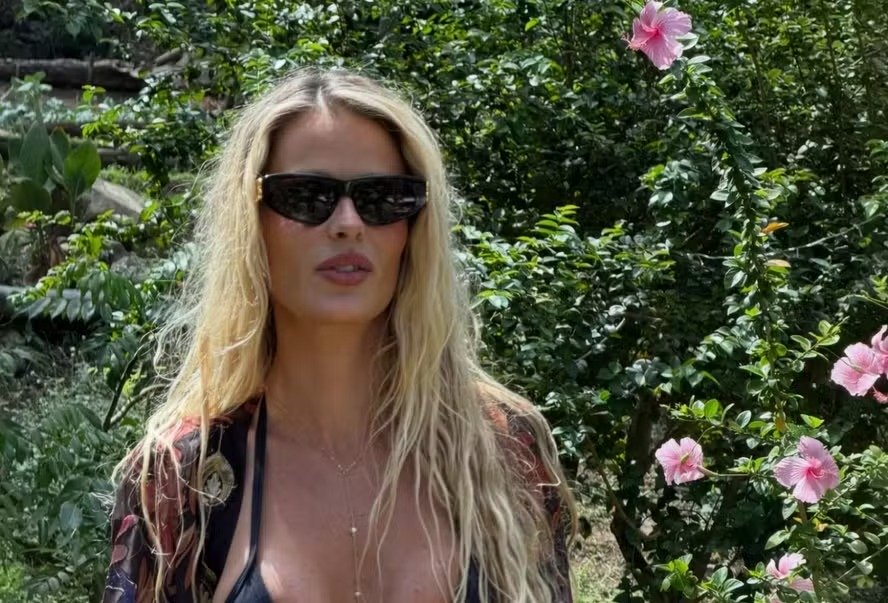 A atriz e modelo Yasmin Brunet, de 37 anos, compartilhou nesta quarta-feira (14) novos registros de suas férias em Fernando de Noronha, arquipélago de Pernambuco. Nas imagens, ela aparece usando um biquíni de fita preto combinado com um robe florido, saia estampada e uma corrente que vai do pescoço até o quadril, em meio a um cenário natural repleto de flores e árvores.